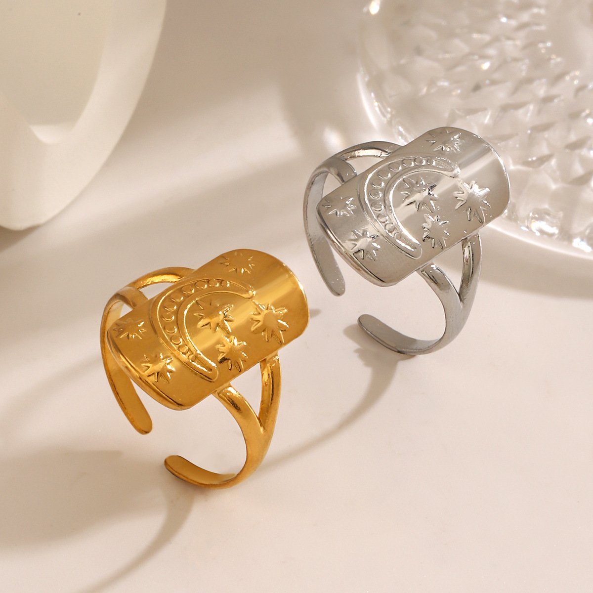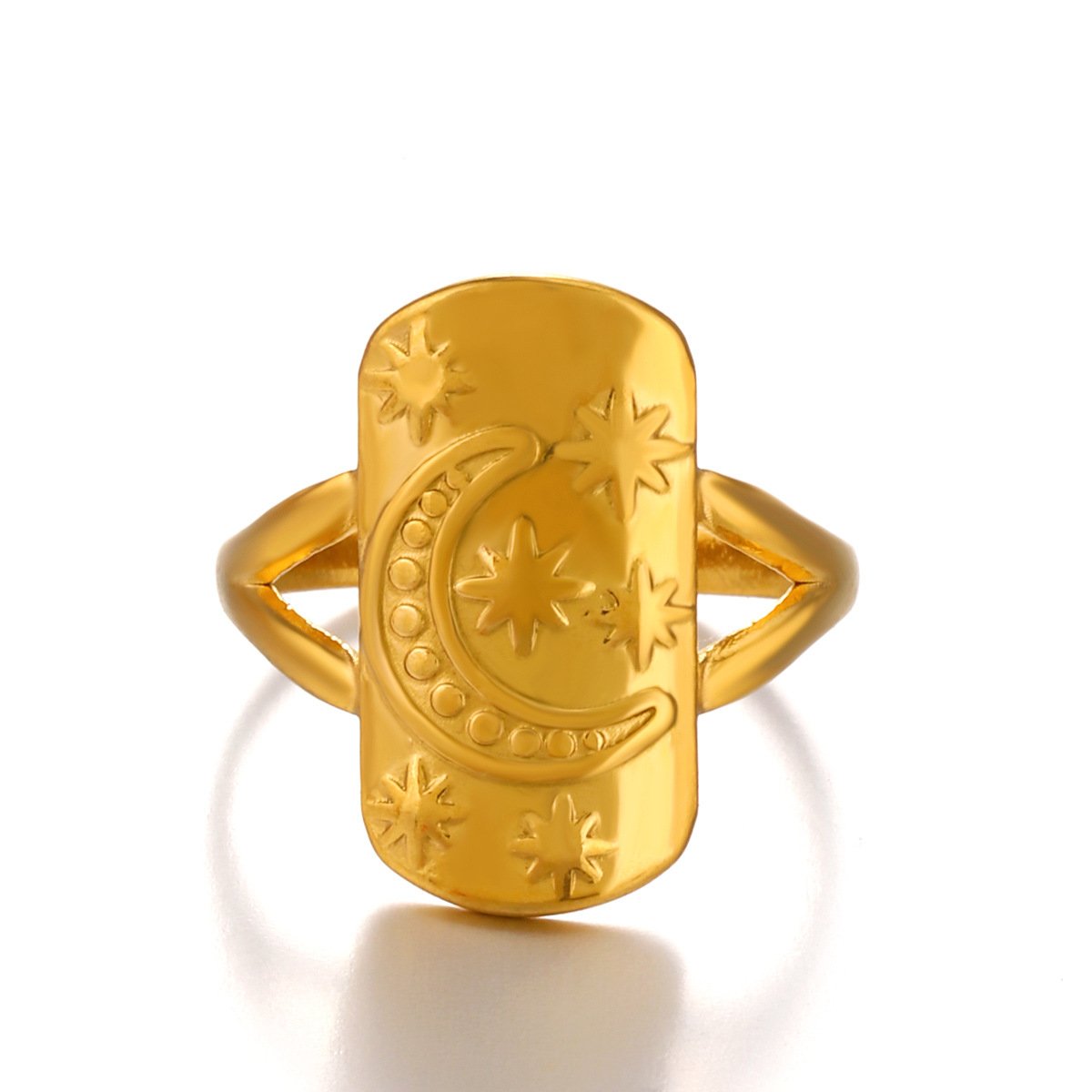 Star And Moon Rectangular Ring