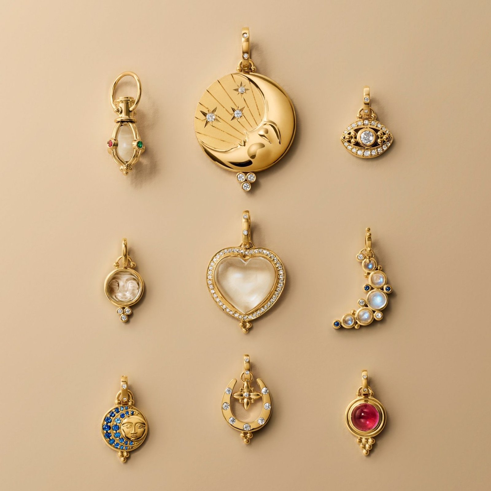 Star Moon Heart Pendant on Clip Chain