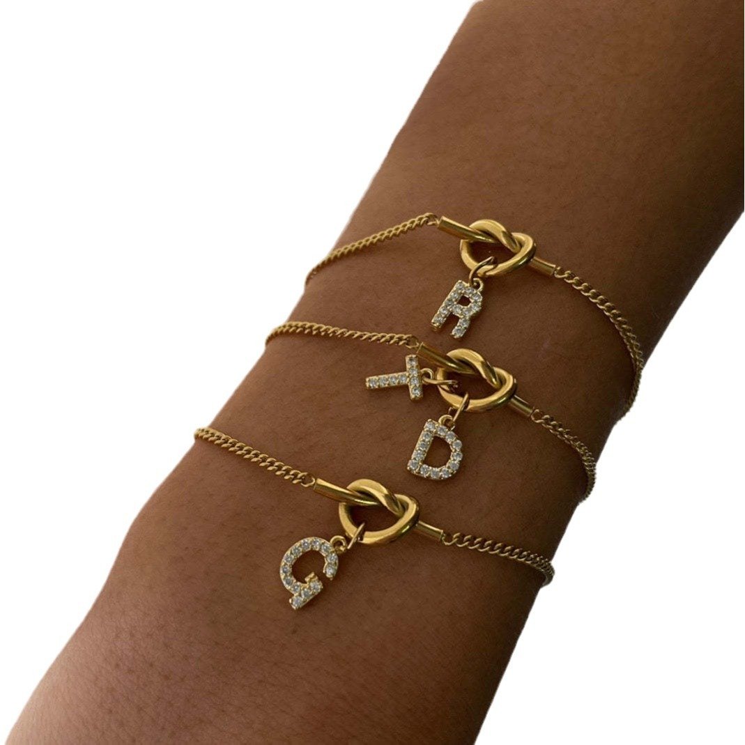 Water Knot Alphabet Heart Cuban Chain Set