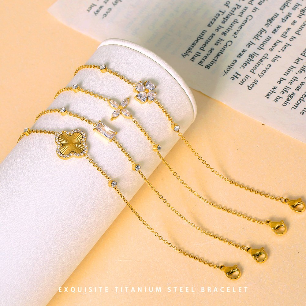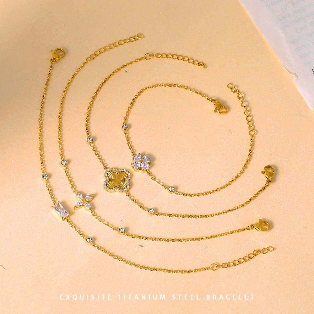 Zircon Four-Leaf Clover Bracelet