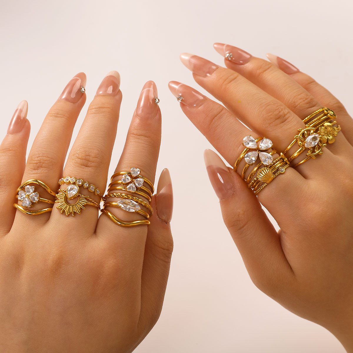Zircon Heart Four-Leaf Flower Ring
