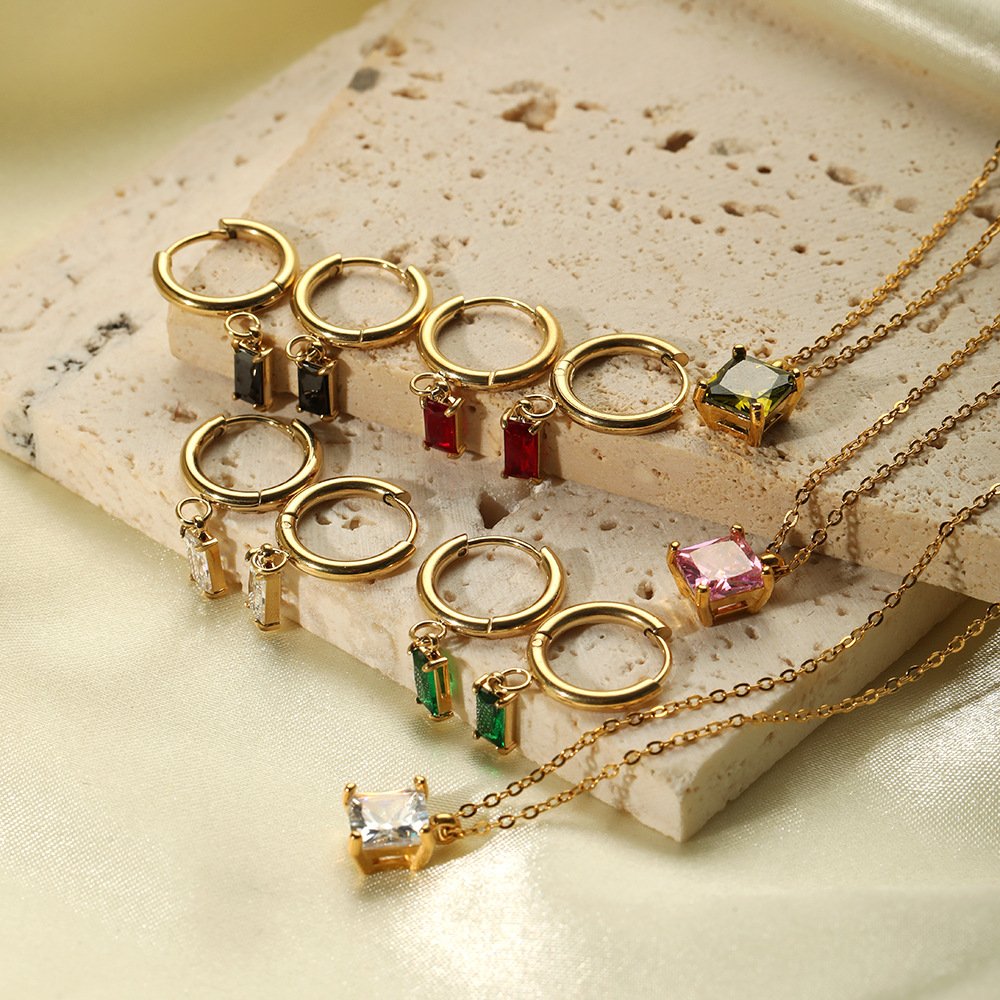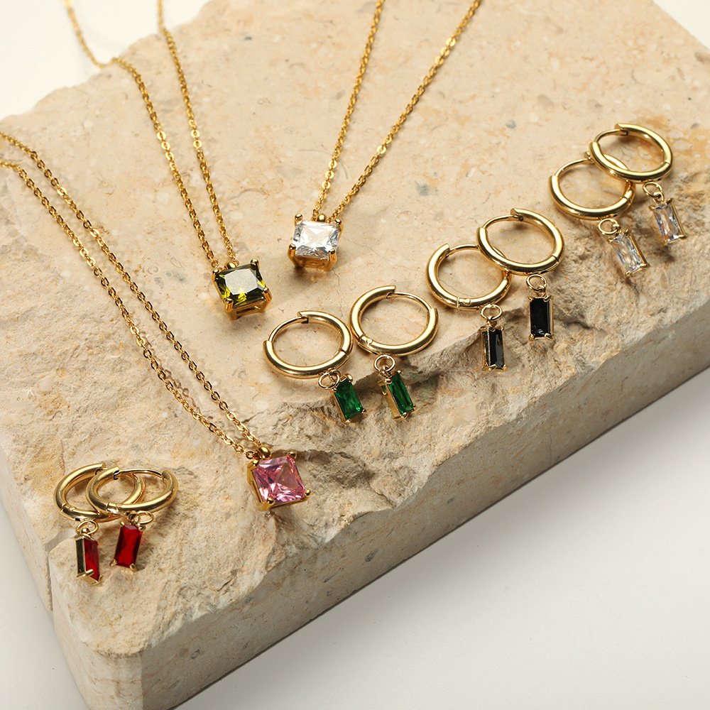 Zircon Necklace Stud Earring Set