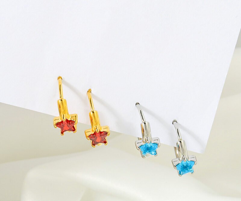 Zircon Red Five-Pointed Star Earrings